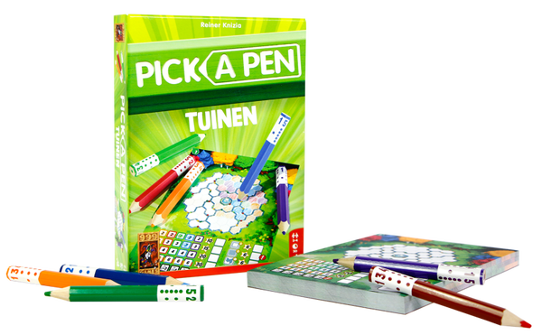 Pick-a-Pen: Tuinen is een spel uit de Pick-a-Pen-serie van de gerenommeerde auteur Reiner Knizia en bevat scorevellen van 3 oplopende niveaus. Op scorevellen 2 en 3 vind je bloemen en bomen, die je op verschillende manieren aan extra bonuspunten kunnen helpen.