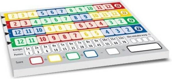 In deze verpakking bevinden zich 2 nieuwe varianten scoreblocks voor nog meer spelplezier. De scorebloks zijn te gebruiken voor het dobbelspel én het kaartspel! De regels veranderen niet, maar de spelbeleving wel. Variant A heeft een scoreblok met getallen in op- en aflopende volgorde maar iedere rij bestaat uit 4 verschillende kleuren. Variant B heeft een scoreblok met getallen die niet in op- en aflopende volgorde staan maar door elkaar (wel dezelfde kleur per rij).