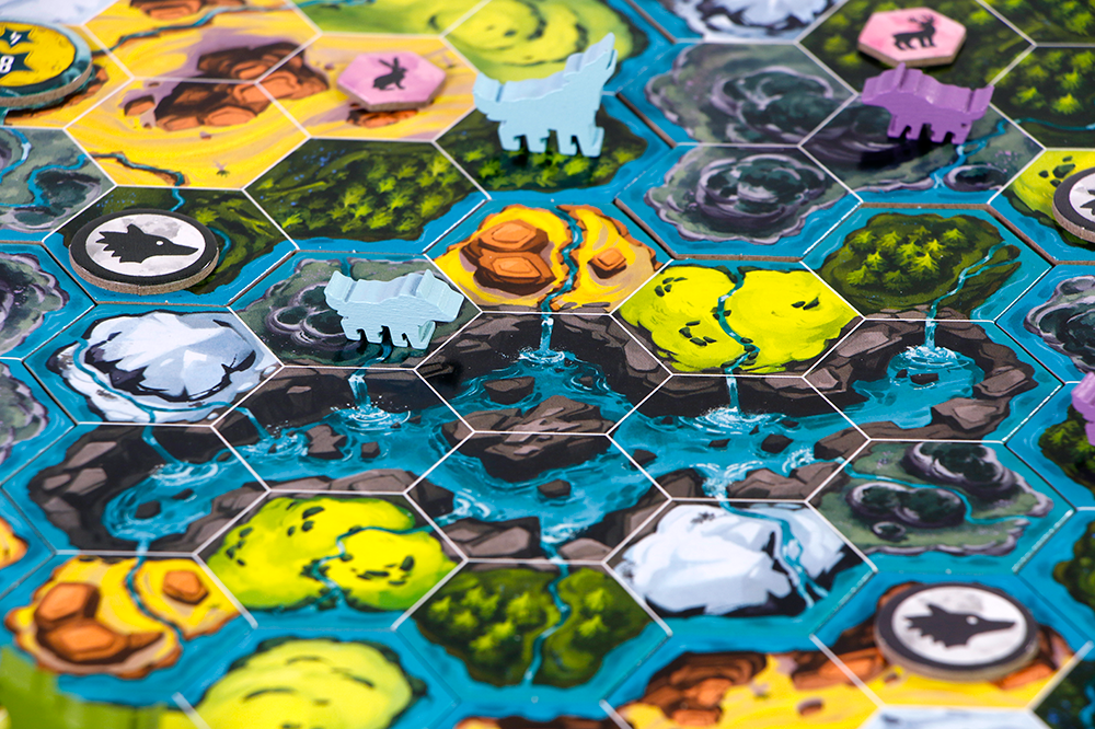 Je beurten worden gestuurd door dubbelzijdige terreintegels. Elke beurt draai je er afhankelijk van de gekozen actie een aantal om. Je mag dan een actie op een veld van dat terrein uitvoeren, mits het binnen bereik van je wolven ligt. Zo kun je je wolven verplaatsen, schuilplaatsen bouwen, waardoor je de eigenschappen van je roedel verbetert, of je schuilplaatsen naar holen opwaarderen. Sommige acties kun je echter uitsluitend met je alfawolven uitvoeren en daar heb je er helaas niet zo veel van.