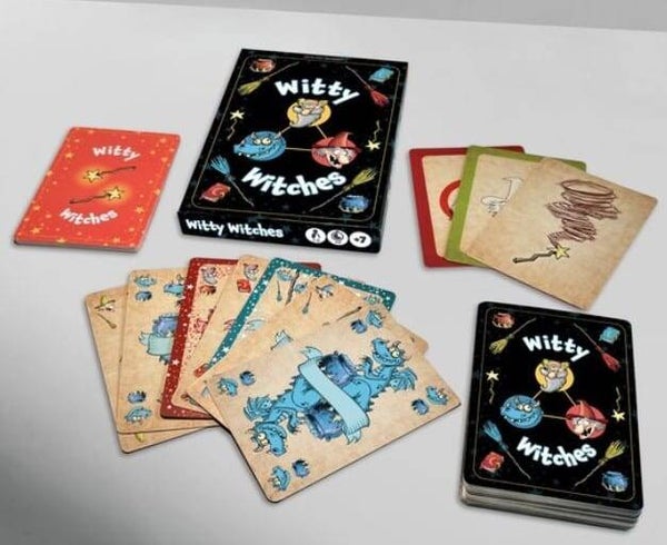 Loods je magische figuren als eerste binnen op het feest met dit kaartspel Witty Witches. Maar pas op, sommige personages kunnen toveren.
