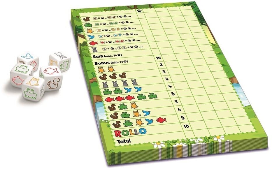 Inhoud: 5 dobbelstenen, 1 scoreblok (50 vellen) en spelregels.