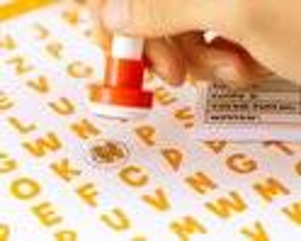 Prik een letter: Blind prikken op het prikbord bepaalt de beginletter.